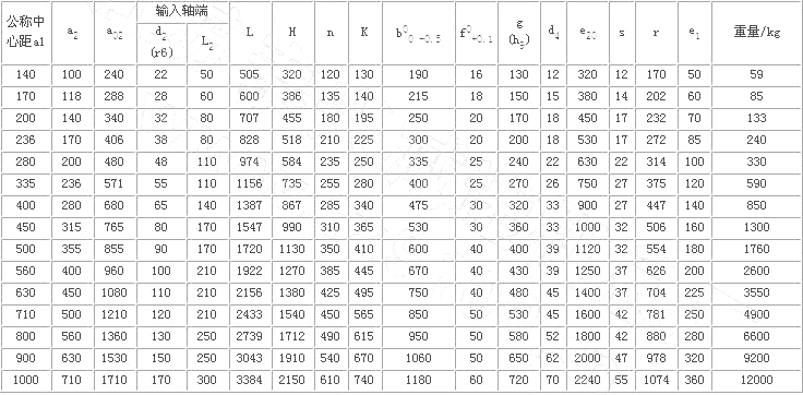 QJR中硬齿面减速机图纸尺寸